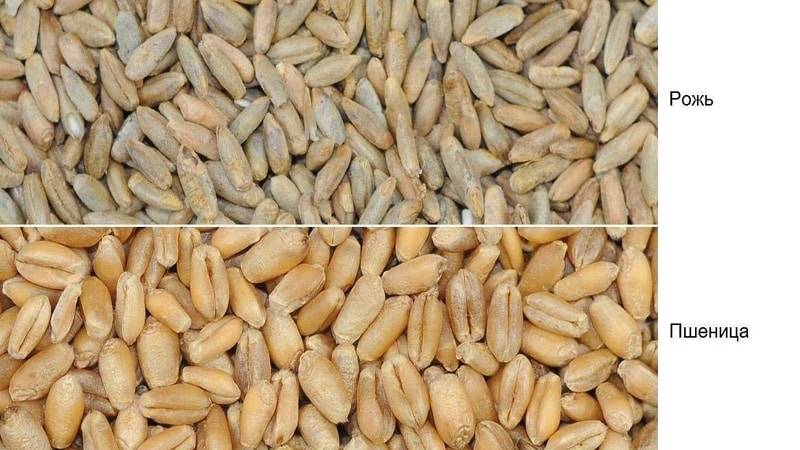 Точно также можно отличить зерна этих культур – у пшеницы спелые семена имеют золотистый оттенок, а вот для ржи характерен зеленовато-серый цвет зерен, как у тимофеевки луговой.