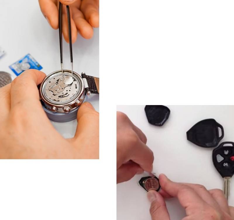 Малогабаритные батареи щелочного типа, имеющие корпуса цилиндрической конфигурации, используются в наручных часах и бытовой технике.