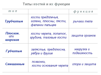 В зависимости от формы различают трубчатые, губчатые, плоские и смешанные кости.