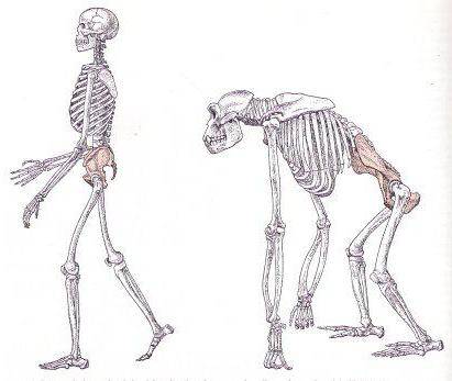 С развитием двуногой походки связана значительная часть признаков присущих для скелета человека: