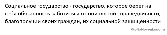 Государство является социальным, если его внутренняя политика ориентирована на предоставление всем своим гражданам равных прав и на создание и поддержание уровня жизни, достойного современного человека.