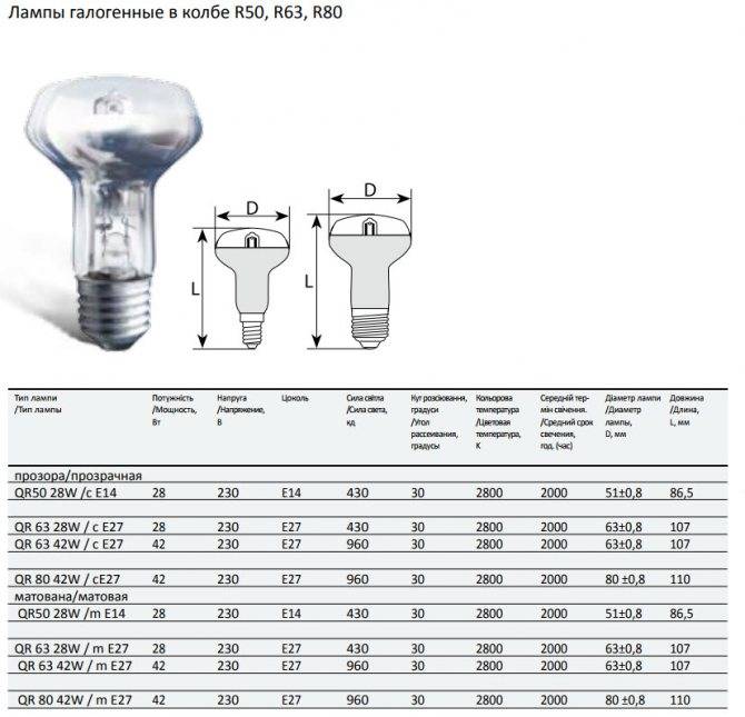 Лампы галогенные в колбе R50, R63, R80