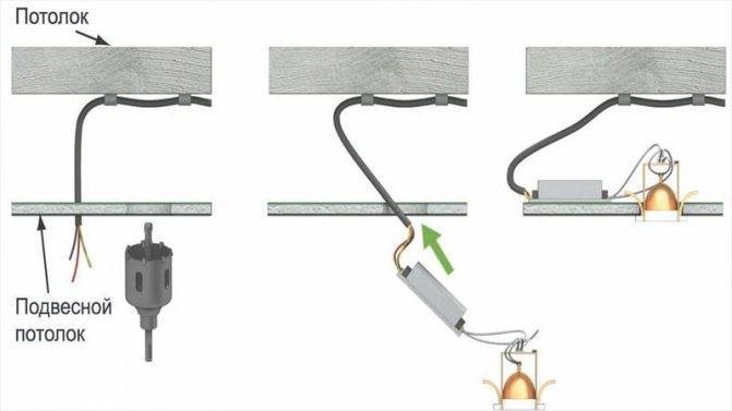 Располагать его нужно не дальше, чем 4 метра от крайних ламп, чтобы избежать потерь. Трансформаторы достаточно компактны – их можно спрятать за гипсокартоном или натяжным потолком. Также продумайте доступ к устройству, в случае если оно выйдет из строя. При установке галогенок в пленочные натяжные потолки нужно использовать лампы небольшой мощности в сочетании с рассеивающими корпусами, чтобы они не расплавили поливинилхлорид.