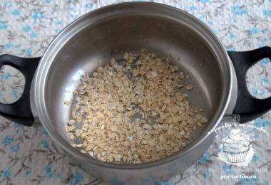 1. Отмеряем необходимое количество овсянки и насыпаем её в сотейник. Для создания клейкой массы используем небольшую и удобную посуду.