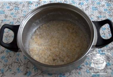 4. В зависимости от качества хлопьев, варим заготовку 5-12 минут (после закипания). Перемешиваем массу и ждём, пока она не станет густой и клейкой.