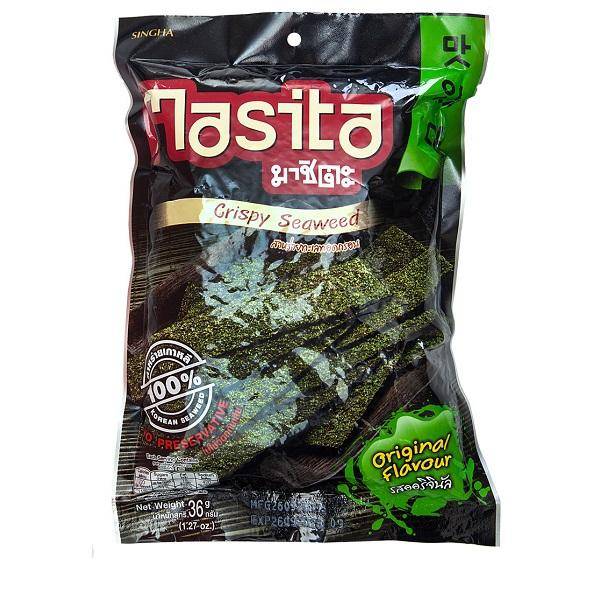 Китайская компания производит рис для суши, соусы, морскую капусту, рисовый уксус, азиатскую лапшу и другие продукты для восточной кухни. Снеки готовятся из ламинарии, выросшей в Тихом океане, путем обжаривания в кунжутном масле. Состав: морская капуста, соль, кунжутное масло. Продукт содержит йод, необходимый для работы щитовидной железы, витамины С, А, кальций, железо. В 100 граммах 319 ккал.