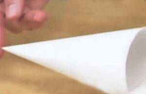 - При скручивании конуса это придется делать под углом, чтобы получилось отверстие желаемого размера (от 1 до 5 см).