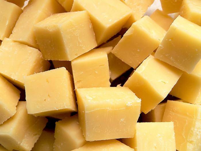 Ярко-желтый полутвердый сыр Чеддер используется для приготовления соусов, закусок, пиццы, даже как дополнение бисквитов и омлетов.