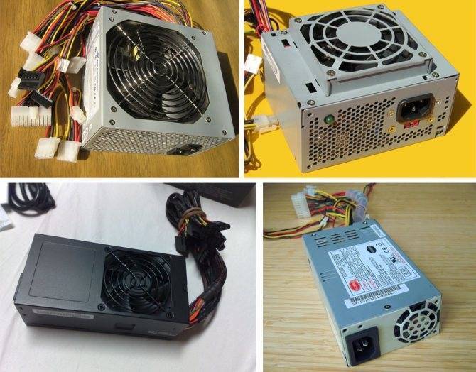 Если у нас корпус форм-фактора «Башня», который сейчас является самым распространённым, то нам нужен БП ATX (на фото выше сверху слева).