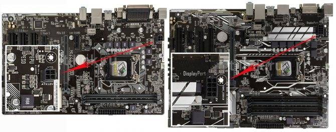 Эта колодка служит для питания процессора и использует шину 12 В. Она может быть двух типов — на 4 контакта и на 8.