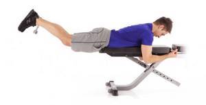 | Гиперэкстензия | Закрепите голени в специальной петле тренажера или поместите их под подушку на диване. Прижмитесь к упору, согните туловище вниз и затем медленно поднимайтесь вверх при помощи мышц спины и бедер. |
