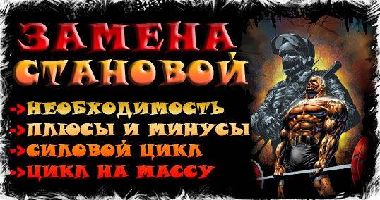 Дело в том, что становая тяга не растит ширину спины, она формирует её каркас и способствует повышению силовых показателей. Как правило, в бодибилдинге становую используют не часто или, вернее, не на постоянной основе, а только во время силовых циклов, и то не всегда! Суть в том, что становая тяга задействует очень много мышечных массивов, отбирая ресурсы, которые можно было бы использовать в других упражнениях, но зато тот потенциал, который она дает за 3-4 месяца, может оказаться решающим в тренировке спины в течение всего последующего года. Именно поэтому заменять становую тягу во время силового цикла мы не рекомендуем, но, если у Вас травмирована спина, то это, к сожалению, придется сделать, а вот во время массонаборного цикла от становой даже нужно отказаться, либо вынести её в конец тренировки.