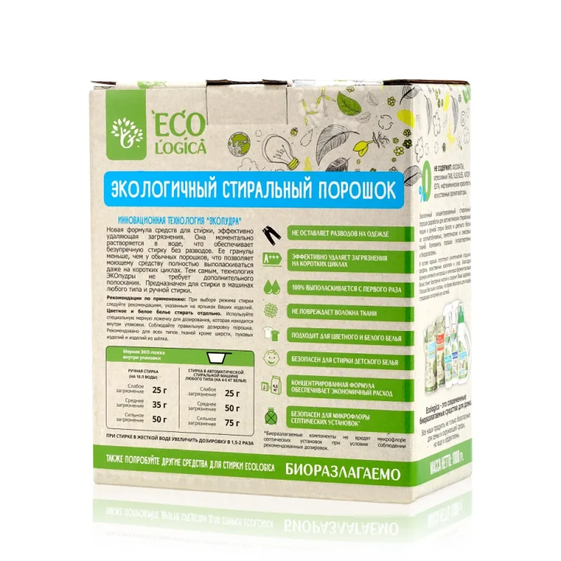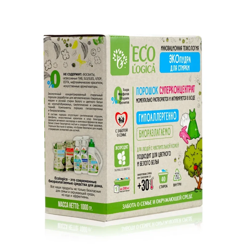 Порошок является классическим средством, применяемым в стиральной машине и при ручной стирке. Экологичный состав позволит использовать его даже для новорожденных и тех, кто склонен к аллергической реакции.