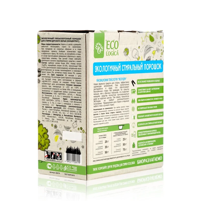 В основе представленного стирального порошка – хозяйственное мыло и сода, известные своей безопасностью и эффективностью, проверенные годами средства. Порошок содержит только мягкие, неионогенные ПАВ, в нем отсутствуют ароматизаторы и красители. Средство экономично расходуется, качественно отстирывает белье и не повреждает ткани. Продукт не вызывает аллергии, и предназначен специально для детских вещей.