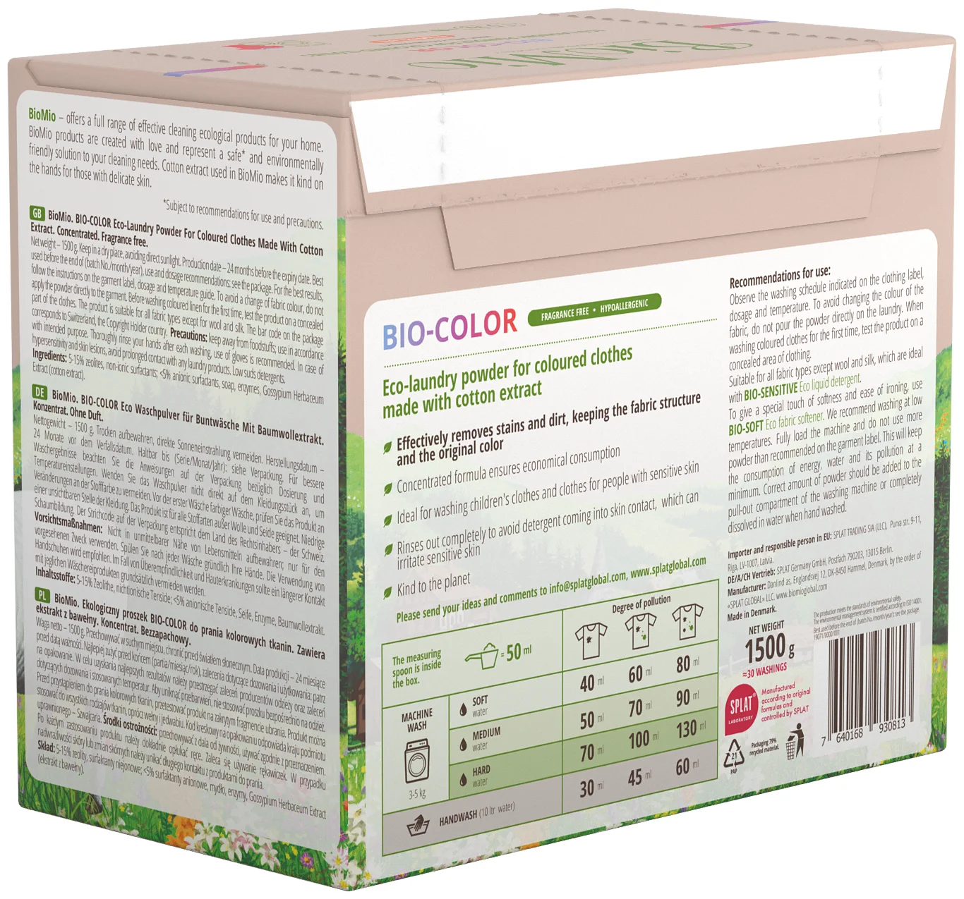 Представленный стиральный порошок является полностью безопасным. Идеально подходит для любого типа стирки белья детей с рождения. Продукт отлично отстирывает трудные загрязнения даже при температуре 30°, не содержит фосфатов, хлора, отдушек и красителей. Являясь гипоаллергенным, он предотвращает появление дискомфорта от возможной аллергической реакции на чувствительной коже и нежной коже малышей.