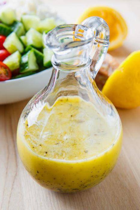 - Оливковое масло соединяем с соком лимона, присаливаем, перчим.