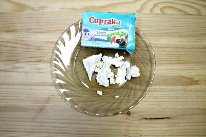 По аналогии с классическим рецептом салат готовится с сиртаки и брынзой. В обеих интерпретациях из списка ингредиентов исключаем соль, а во втором варианте еще и заранее вымачиваем сыр.