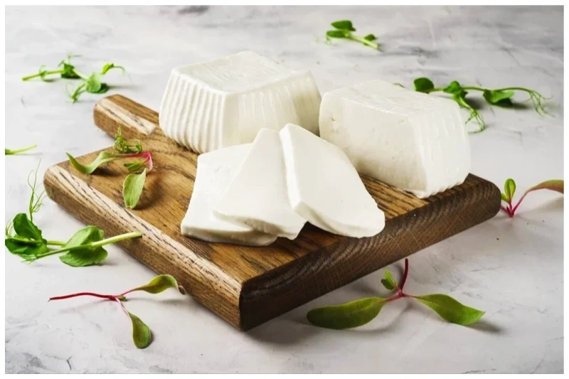 1. Фета из творога. Для тех, кто предпочитает более нежный вкус, можно приготовить фету из творога. Эта альтернатива легче переносит нагревание и сохраняет форму во время выпечки.