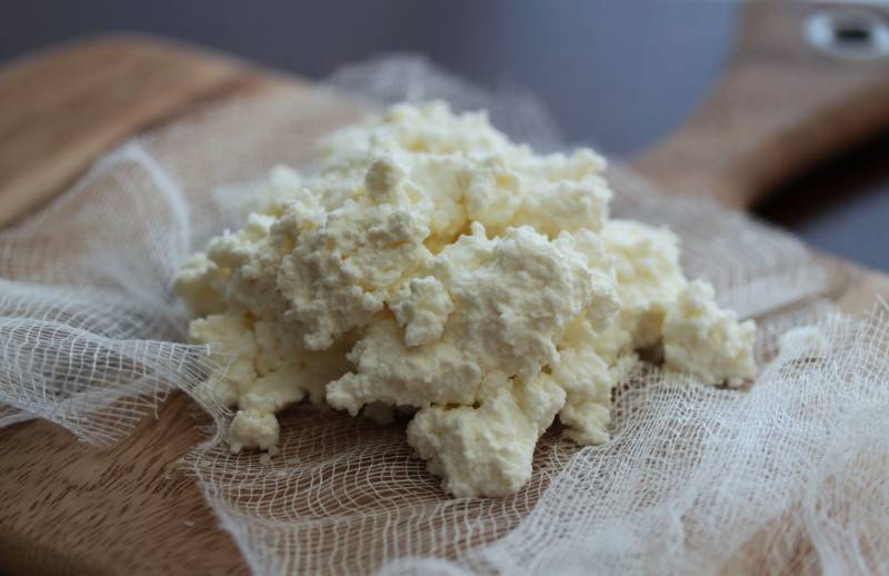 ·достаньте полученную смесь, положите ее на марлю и приподнимите. Это поможет избавиться от образовавшейся сыворотки;