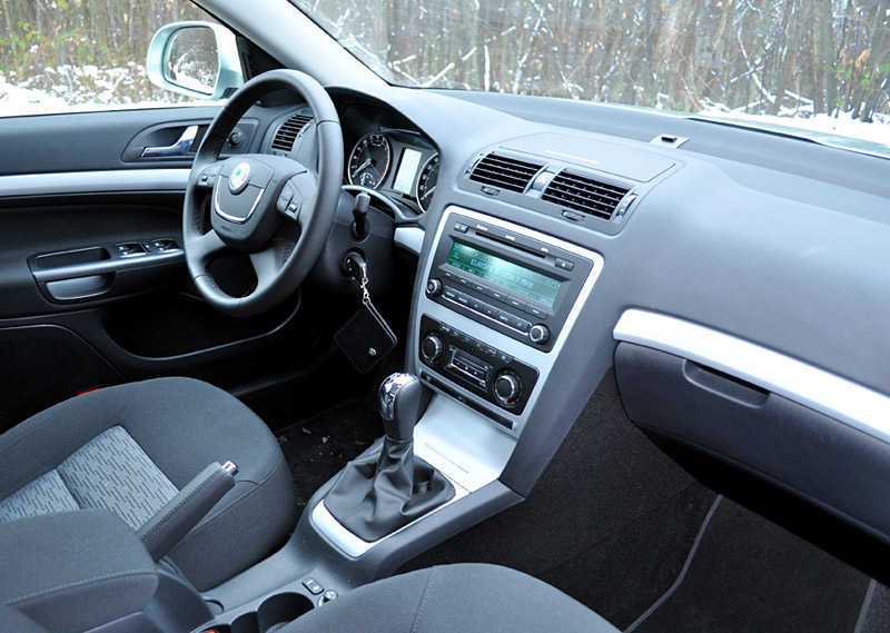 Лаконичный интерьер Шкоды Октавия не содержит элементов экстравагантного дизайна. Новинкой стала шкала приборов, с оцифровками радиального типа, не применявшимися в чешских моделях. Просторный салон продуман по эргономике, удобству заднего отсека. Регулировки передних сидений, посадка водителя, конструкция кресел рассчитаны с немецкой точностью, не способной вызвать претензии. Эксперты считают, что Шкода Октавия лучше по качеству пластмасс, точности сборки, подгонке декоративных элементов.