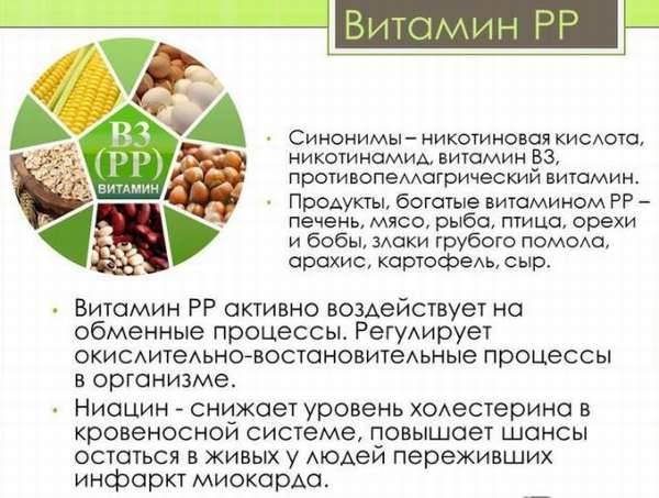 Никотиновая кислота — важный элемент для работы организма. Витамин РР необходим для работы сердца, желудочно-кишечного тракта, внутренних органов и выработки гормонов. Восполнить нехватку этого элемента можно при приеме аптечных препаратов, но дозировку и продолжительность лечения необходимо согласовать с лечащим врачом.