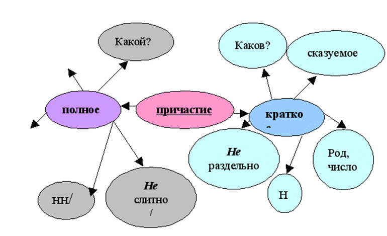 - Причастия могут иметь краткие формы (прочитан, проигран, пропущен).