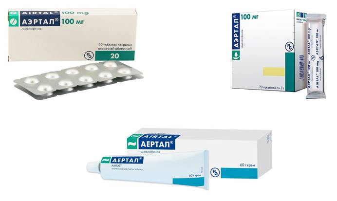 Аэртал – средство для лечения болезней суставов, содержащее ацеклофенак. Относится к нестероидным противовоспалительным препаратам для системного и местного применения. Подавляет синтез простагландинов, оказывая противовоспалительное действие и уменьшая боль.