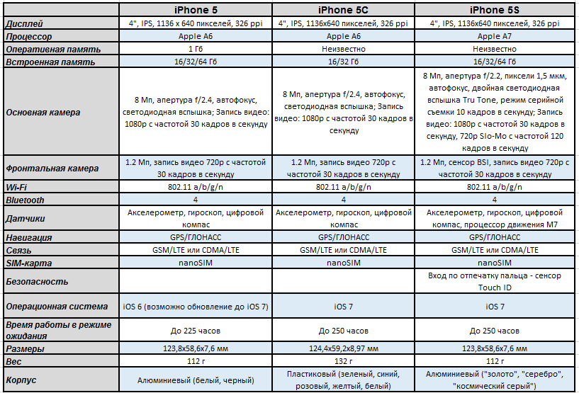 Кроме того, у iPhone 5 представлены варианты в цветовом исполнении белый или черный, тогда как у iPhone 5S доступны цветовые варианты серебристый, золотистый и «серый космос».