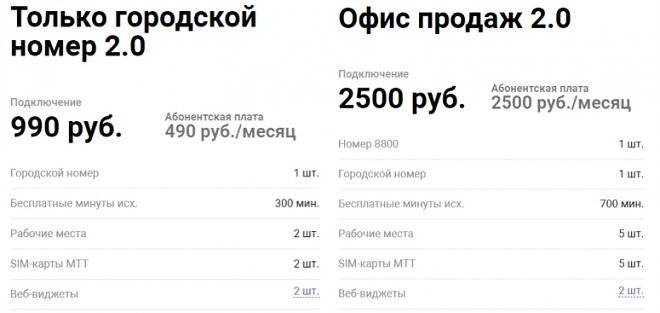 Кроме премиального пакета провайдер предлагает несколько специальных тарифов. Например, только с городским номером или для небольшого офиса продаж.