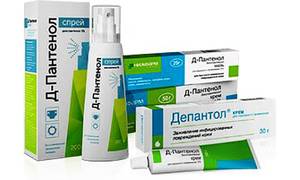 Под наименованием Пантенол выпускается препараты в форме мази, крема и спрея. Основным действующим веществом независимо от лекарственной формы является декспантенол. Это провитамин В₅, способствующий восстановлению поврежденных кожных покровов. При нанесении на кожу он активно всасывается в верхние слои эпидермиса, превращается в пантотеновую кислоту и связывается с белками. В результате такого взаимодействия улучшается состояние кожных покровов: