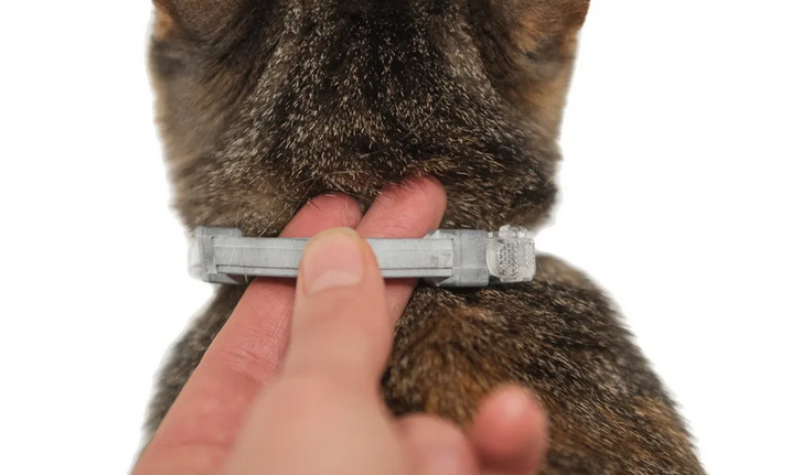 Ошейники от блох обеспечивают защиту питомца на срок от двух до семи месяцев. Принцип их работы прост: сам ошейник пропитан большим количеством инсектицидного вещества (обычно на основе Перметрина или Диазинона), которое и отпугивает паразитов своим запахом, и постоянно в минимальных количествах присутствует на теле, отравляя любого паразита, кусающего питомца.