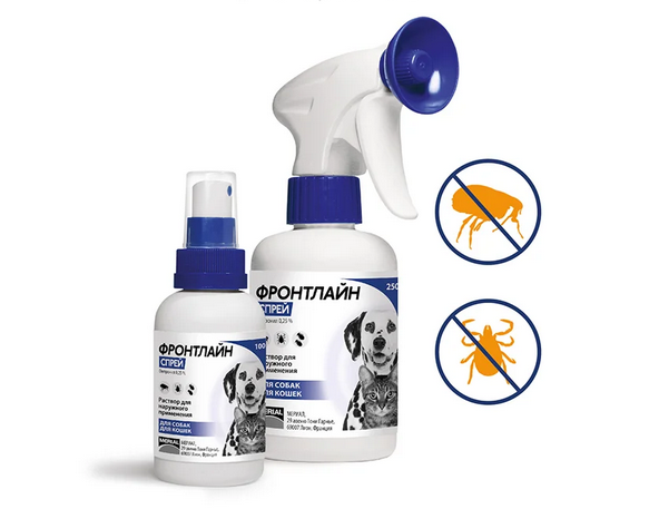Фронтлайн Спрей для защиты котят и щенков от блох и клещей со 2 дня жизни. Профиль безопасности. Разрешен к применению беременным и кормящим собакам, щенкам и котятам со 2 дня жизни. Можно применять котятам и щенкам любого веса. Время. В отличие от Фронтлайн Комбо и Фронтлайн Спот Он, которым требуется время на распределение препарата по коже питомца, Фронтлайн Спрей вы наносите сами на всю поверхность тела Контактное действие.