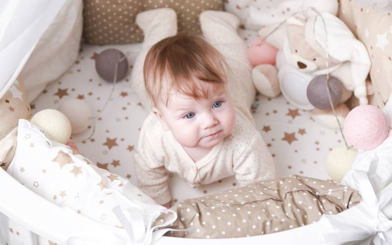 - Стандартные кроватки с перекладинами слишком велики для новорожденных. Поэтому часто необходимо окружать ребенка свернутыми одеялами или подушками, и это может быть опасно для него — ребенок может повернуть рот к подушке, что затруднит дыхание.