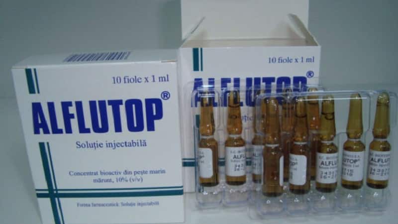 Алфлутоп содержит набор биологически активных аминокислот и пептидов, получаемых из тканей морских рыб. Этот препарат обладает противовоспалительным, противоотечным и регенерирующим действием. Он стимулирует обменные процессы в поврежденных тканях, способствует заживлению ран и повышению синтеза коллагена. Алфлутоп применяют при лечении артритов, артрозов, остеохондроза и других заболеваний опорно-двигательной системы.