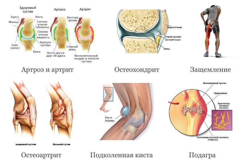 - Остеоартрозе (заболевание суставов, вследствие поражения хрящевой ткани) различных суставов;