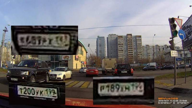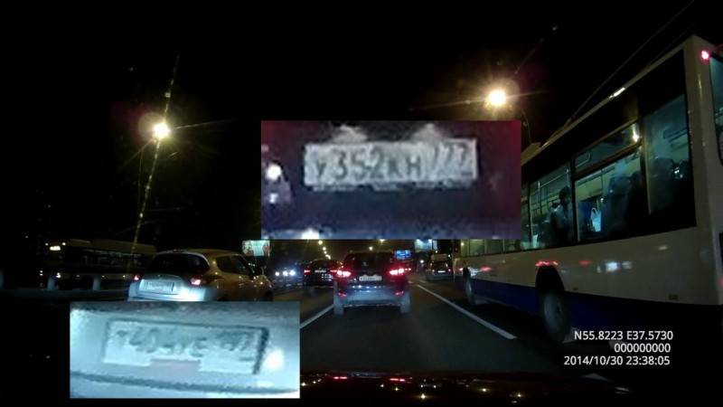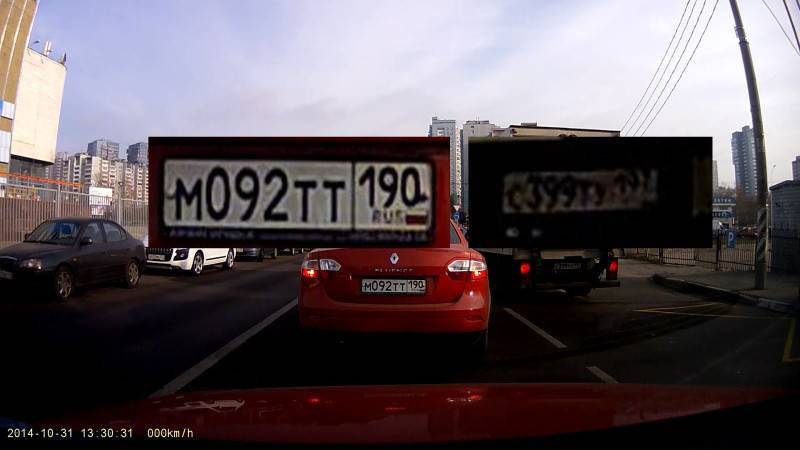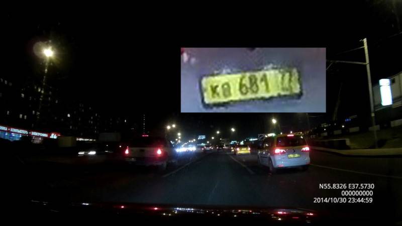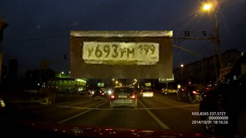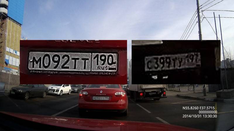 На соответствующем видео вполне четко отрисовываются достаточно мелкие детали. На стоп-кадрах можно увидеть, например, не только номера впереди едущей на расстоянии до 10 метров машины, но и автомобилей, которые обгоняют сбоку.