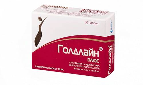 - Голдлайн плюс: Главным действующим веществом Голдлайн плюс является сибутрамин, который подавляет аппетит и ускоряет метаболизм. Этот препарат также содержит витамины, минералы и аминокислоты.
