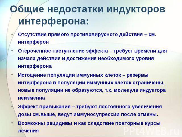 Поэтому при использовании ИФН альфа важно тщательно оценить пользу и риск для пациента и подобрать оптимальную дозу и режим применения