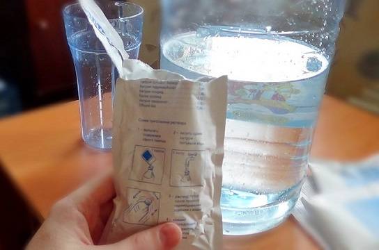 Количество раствора, которое необходимо употребить, рассчитывается по весу тела. 1 порошок (= 1 л раствора) идёт на 15 − 20 кг массы. В среднем человеку потребуется 3 − 4 пакетика.