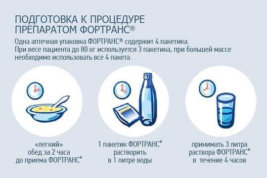 Для этого можно применить механический или медикаментозный метод. Механическое очищение кишечника достигается клизмами, медикаментозное — слабительными средствами, например, Фортрансом или Микролаксом.