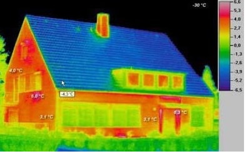 На картинке выше наглядно изображены места где лучше/хуже произведено утепление дома. Чем ярче свет, тем больше тепла уходит через этот участок.