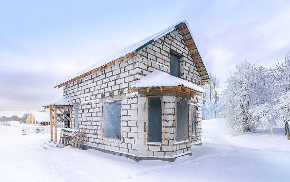 Важно! Хоть капиллярное водопоглощение газобетона и небольшое, но оставлять верхнюю часть кладки и сами блоки открытыми на зиму нельзя. Так как это приведет к застою воды сверху газоблока, и верхний слой начнет разрушаться