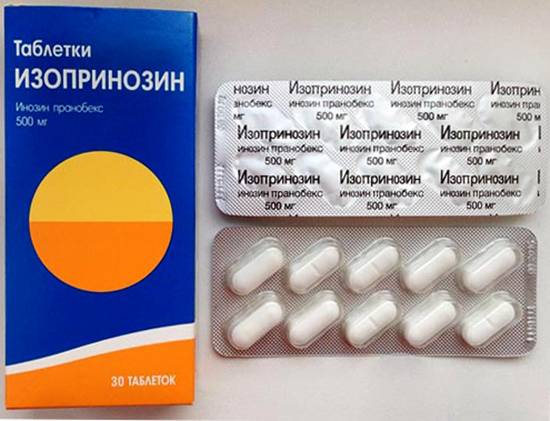 Изопринозин работает против разных вирусных возбудителей. В результате его приема наблюдается выраженный иммуномодулирующий эффект. Он оказывает системное влияние, производится только в виде таблеток. Принимают их 4-6 раз в сутки, продолжая лечение в течение 48 часов после исчезновения выраженной симптоматики. При рецидивирующих инфекциях курс лечения состоит из нескольких этапов, между которыми делают 8-дневные перерывы.