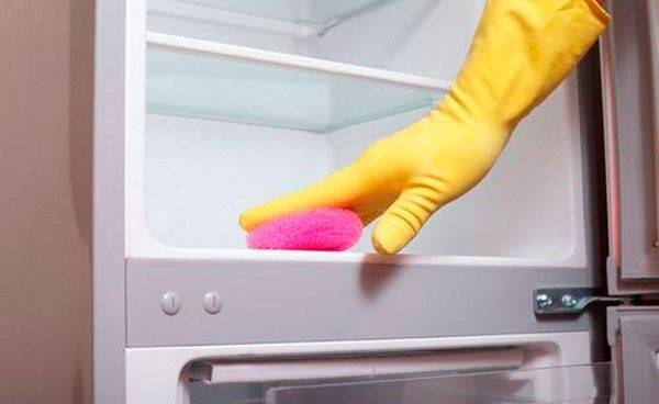 Внутренние поверхности холодильника следует промывать как минимум раз в год, а лучше чаще. В противном случае капли пищи впитаются в пластик и передадут ему отталкивающий запах. Перед началом уборки надо выключить прибор из сети и вынуть из него продукты независимо от того, к какому типу принадлежит устройство.