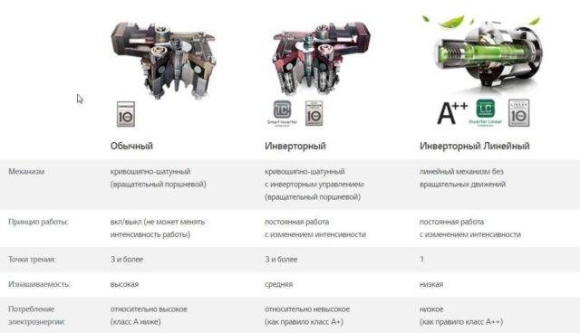 Тип компрессора влияет на уровень энергопотребления и шумов