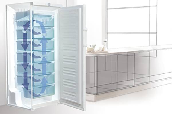 - внутри задней и боковой стенок имеется множество каналов, по которым прохладный воздух распространяется по всему отсеку.