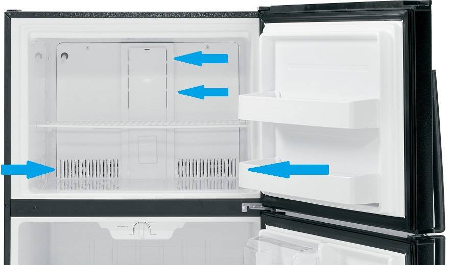 Отверстия для обдува в морозильной камере с No Frost в холодильнике.