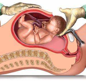 - Риск обвития пуповиной, кислородного голодания или травмы головы младенца.