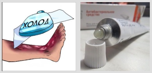 В случае возникновения ожогов первым делом следует устранить повреждающий агент (охладить участок при термическом ожоге или удалить с поверхности кожи вещество, являющееся источником химического ожога). После этого, по возможности, необходимо очистить кожу от загрязнений , а затем обработать поверхность вокруг раны антисептическим средством и нанести на рану препарат, который вытягивает гной , препятствует развитию бактериальной инфекции и способствует скорейшему заживлению.