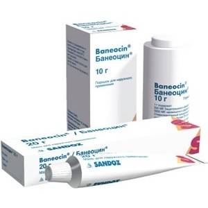 За этим наименованием кроется несколько лекарственных препаратов – мазевое средство и порошок. Они имеют в своем составе сразу два антибактериальных компонента, относящихся к группе амингликозидов. Это бацитрацин, а также неомицин